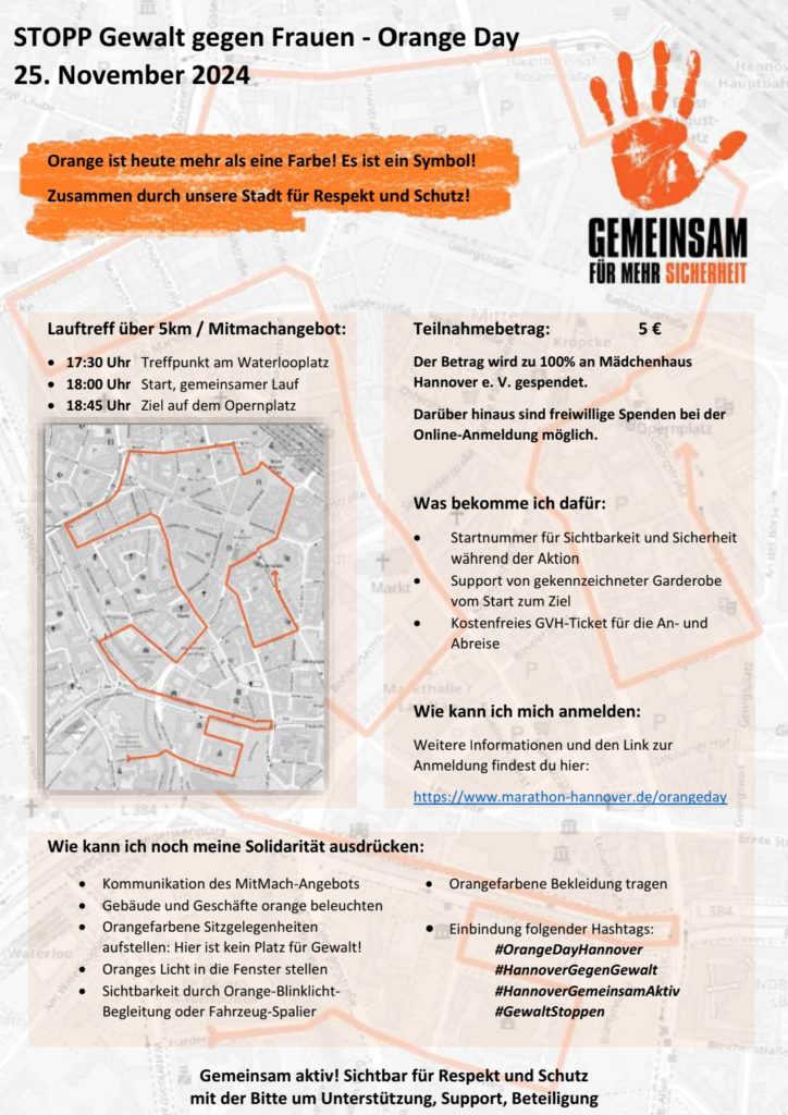Weiterlesen - Orange Day 2024, „Hannover läuft gegen Gewalt gegen Frauen!“